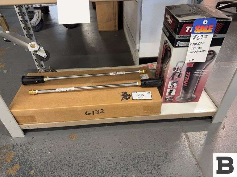LOT 89 - Titan Pump Runner, Pressure Washer Broom, Air Gun, Pressure Washer Gun Extensions